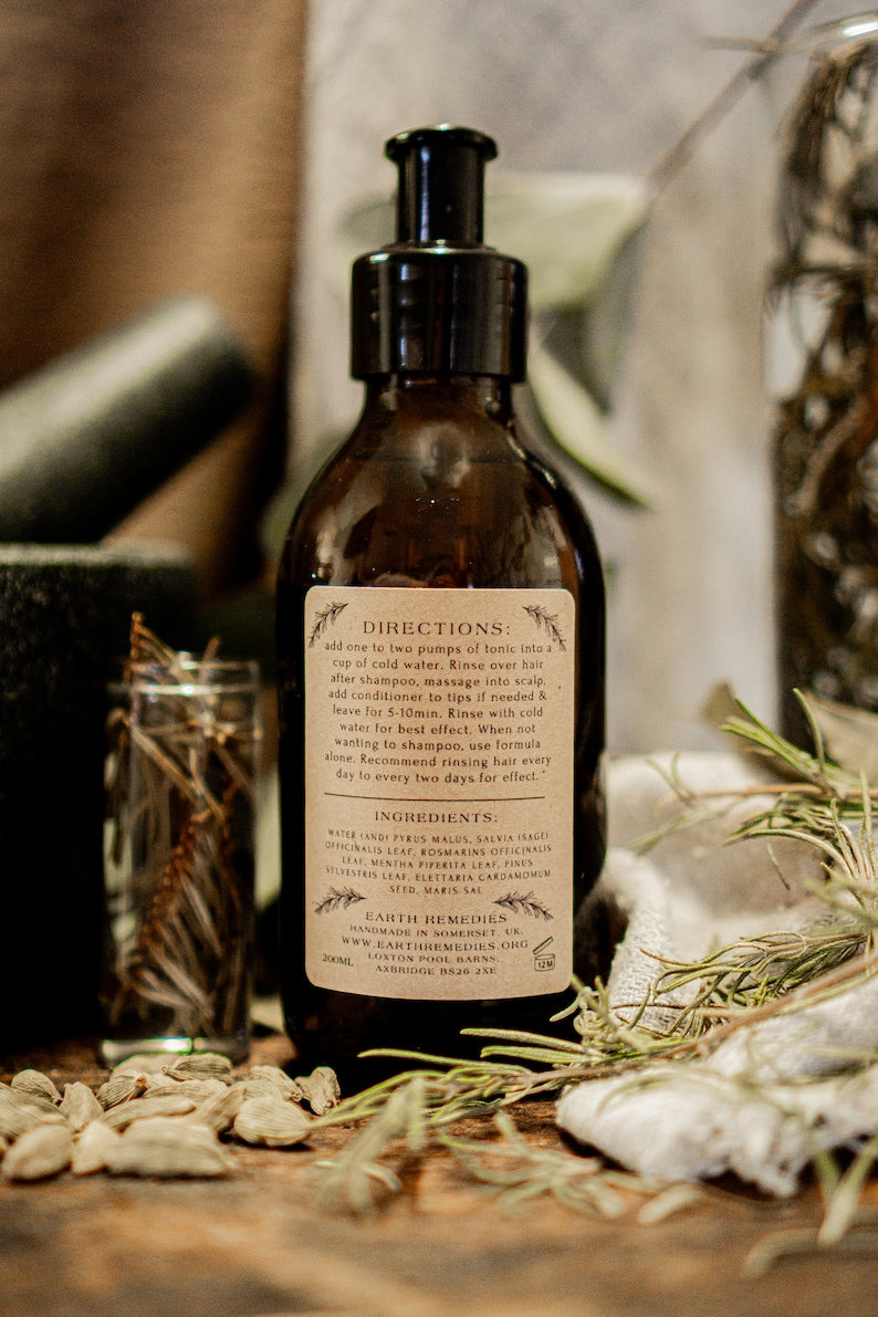 add two to five pumps (depending on hair length) of tonic into a cup of cold water. Rinse over hair after shampoo, massage into scalp, add conditioner to tips if needed & leave for 5-10min. Rinse with cold water for best effect. When not wanting to shampoo, use formula alone. Recommend rinsing hair every day to every two days for effect.