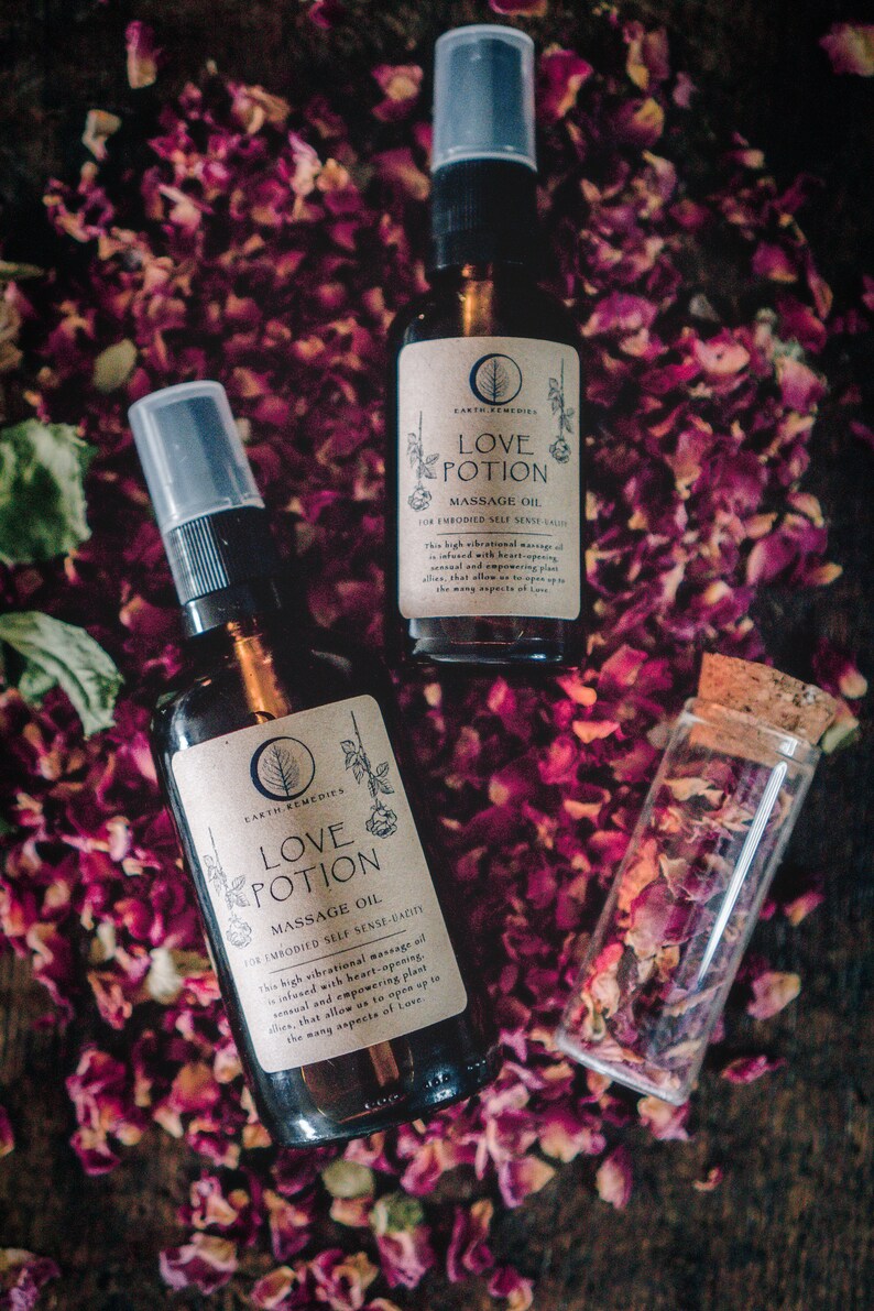 Love Potion is an aromatherapy massage and body oil that can be used for self-love or partner massage rituals. Its sensual aroma tunes into the high vibrational frequency of love, with empowering plant allies that allow us to open to the many aspects of Love.